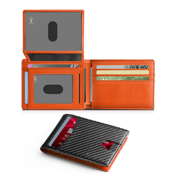 Fashionable RFID Blocking men's wallet, Minimalism Carbon fiber pattern credit card holder, Double fold portable front wallet